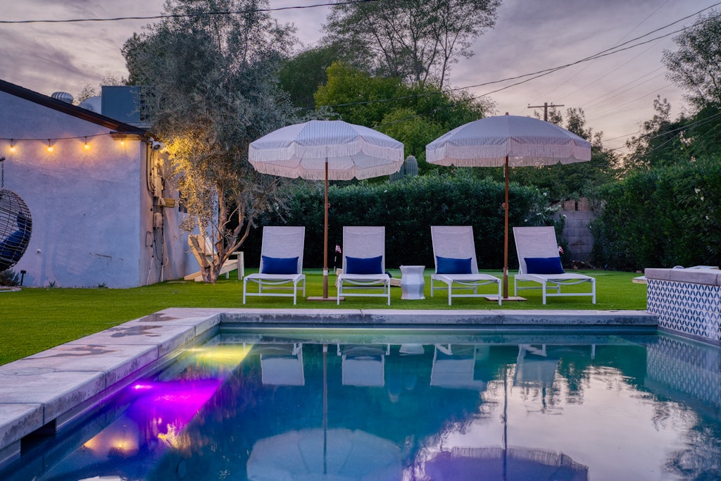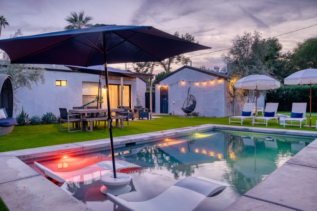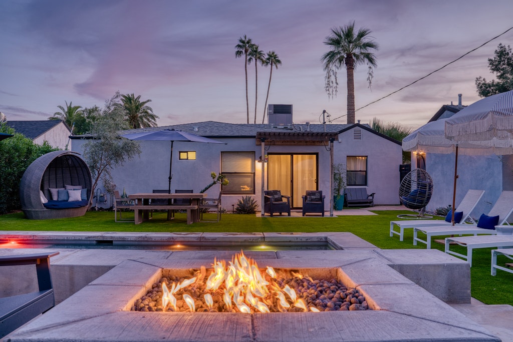 4 Bedrooms • 3 Bathrooms 3 Baths • Sleeps 5-11Enjoy this beautifully remodeled home--keeping its charm in a quiet and historic neighborhood near it all. Gorgeous open floor plan in the which has three bedrooms and two bathrooms including a master en suite and additional area that is set up with a bar and reading space overlooking that large private yard with a brand new heated pool and gas fire pit seating area just installed. Great entertaining house with large backyard--lots of lounge furniture. Adjacent to the house is our beautifully remodeled private guest home with its modern historic charm. The casita has it's own locked entrance, private front patio with sitting area with lounge area. Separate bedroom has comfy queen size bed with high quality linens, pillows and down comforter, pendant reading lights, closet for additional storage, and attached bathroom with subway and penny tile tub/shower, and lots of natural light.