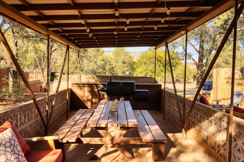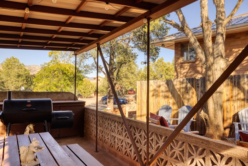 You and your guests will have a memorable experience in our quiet, cozy and perfectly-located home in West Sedona near shops restaurants and hiking trails. Our pet & family friendly 2-bedroom home offers comfort and convenience, quiet outdoor picnic space….and views of Thunder Mountain from the living room! Great for a hikers, bikers, families travelling with kids. Should your group need more space you could rent both units with the lower level unit (one bedroom studio with full kitchen)—just inquire with us!