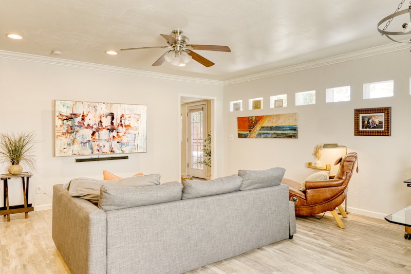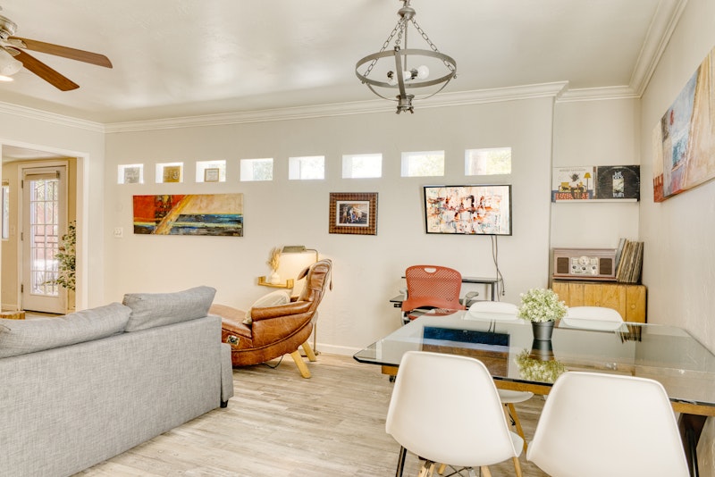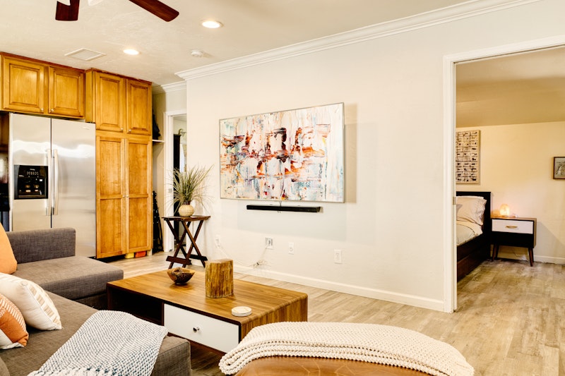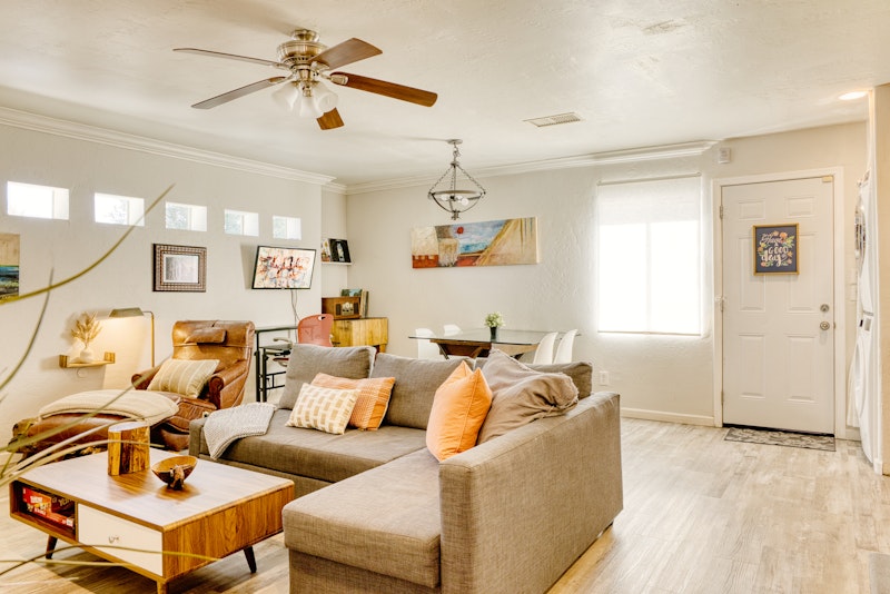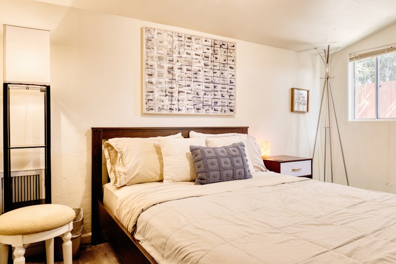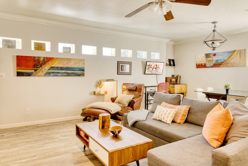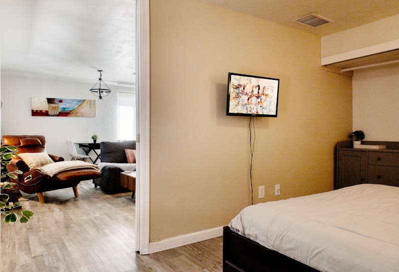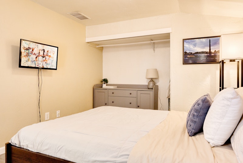 1 Bedroom • 1 Bathroom 1 Bath • Sleeps 1-4Located in an established and coveted Sun View Estates neighborhood with tree-lined streets and large homes, you'll ease into peaceful desert living. There are two parking spots directly in front of the unit as well as plenty of street parking, and a short distance to great restaurants, coffee shops, golf courses, bike paths, hiking, and the light rail that can take you to Sky Harbor Airport, downtown Phoenix, and Tempe. Only a 22-minute drive to Old Town Scottsdale. Perfect for a couples' getaway or someone working in the area for a while.