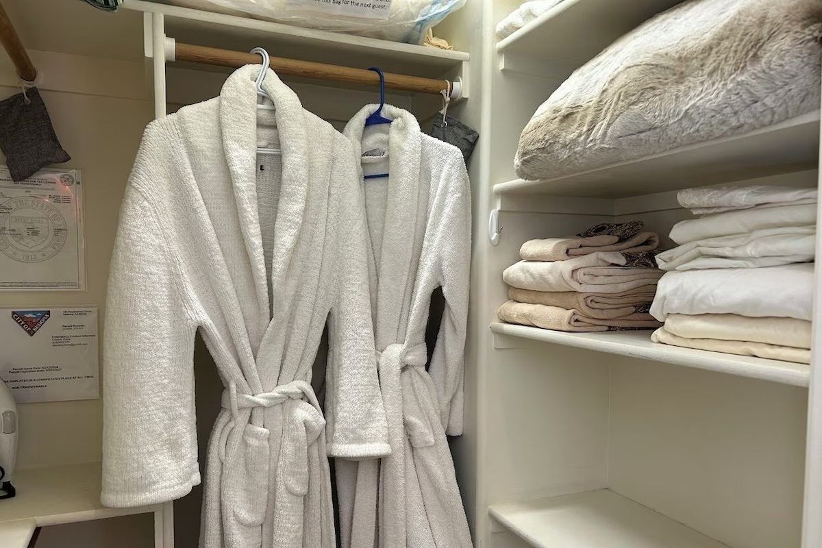 - Plush queen bed with premium linens
